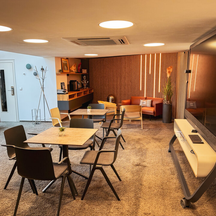 It is a bright and friendly room with natural daylight and offers direct access to the conservatory, state-of-the-art technical equipment and air conditioning.